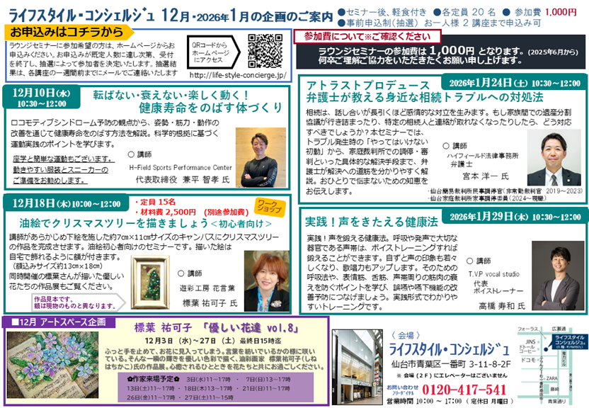 ラウンジセミナーのご案内 < 2025年12月・2026年1月 >